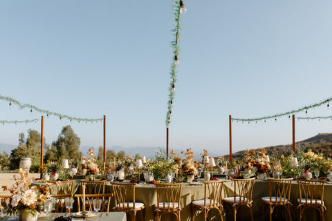 Reception site with 360 views, overhanging bistro lights and ample room for dancing